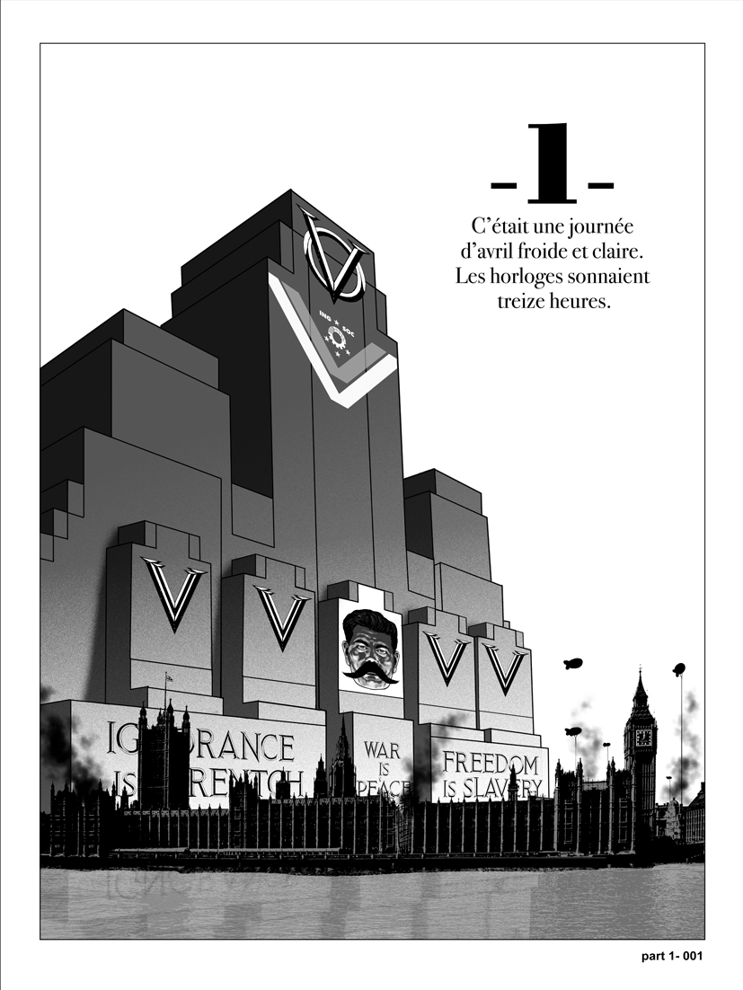 Publié en 1949, « 1984 » a été considéré à l’époque comme un roman de science-fiction. Orwell tentait de prédire ce qui pourrait arriver. L’ouvrage était alors terrifiant, mais cela paraissait hautement improbable dans une démocratie. En fait, « 1984 », roman politique, pouvait être lu 1948 dans le contexte de Guerre froide. Il décrivait alors la dérive du marxisme et du stalinisme vers un régime oppressif écrasant l’individu. En témoigne, le choix graphique appliqué à bon escient par les auteurs. « Big Brother » a la tête de Staline. Goldstein, le meneur des opposants, ressemble fortement à Trotski.