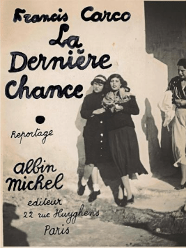 C’est dans « La Dernière Chance », publié en 1935 chez Albin Michel – l’éditeur auquel Carco restera fidèle (sauf lors de son exil en Suisse entre 1942 et 1945) – que ce talent de témoin et de reporter s’exprime pleinement. Cet ouvrage constitue un long reportage sur la prostitution et la drogue au Moyen Orient, là où le « Milieu », pressentant un monde en mutation, tente sa « dernière chance » en se diversifiant dans la « traite des blanches » et le trafic de drogue. Sûr de lui, sa renommée d’écrivain l’introduit aussi bien auprès des autorités locales que des marlous de passage. Il est accompagné un jour par le directeur de la police, d’autres par Amédée la Commande, Total ou Fernand, François le Fou ou Poloche ; maquereaux parisiens en reconversion. D’Athènes à Smyrne (10), en passant par Constantinople (11), Beyrouth, puis terminant son périple à Tunis, Carco parcourt les ports des rives de la Méditerranée et témoigne. Des femmes rencontrées à Smyrne il dit : qu’il « fallait avoir été privé depuis longtemps d’amour pour leur découvrir le moindre attrait ». Nostalgie et poésie ne sont pas absentes. De la Mosquée Sainte Sophie à Istamboul où « rien de ce qu’un Européen a jadis aimé ne subsiste aujourd’hui », il est conquis par « le silence où l’on s’y engloutit ». À Beyrouth : « Légionnaires, tirailleurs, filles, porteurs de café, policiers à matraque, vieilles vendeuses de fleurs et mendiants achèvent de fournir au quartier son caractère des mille et une nuits ».